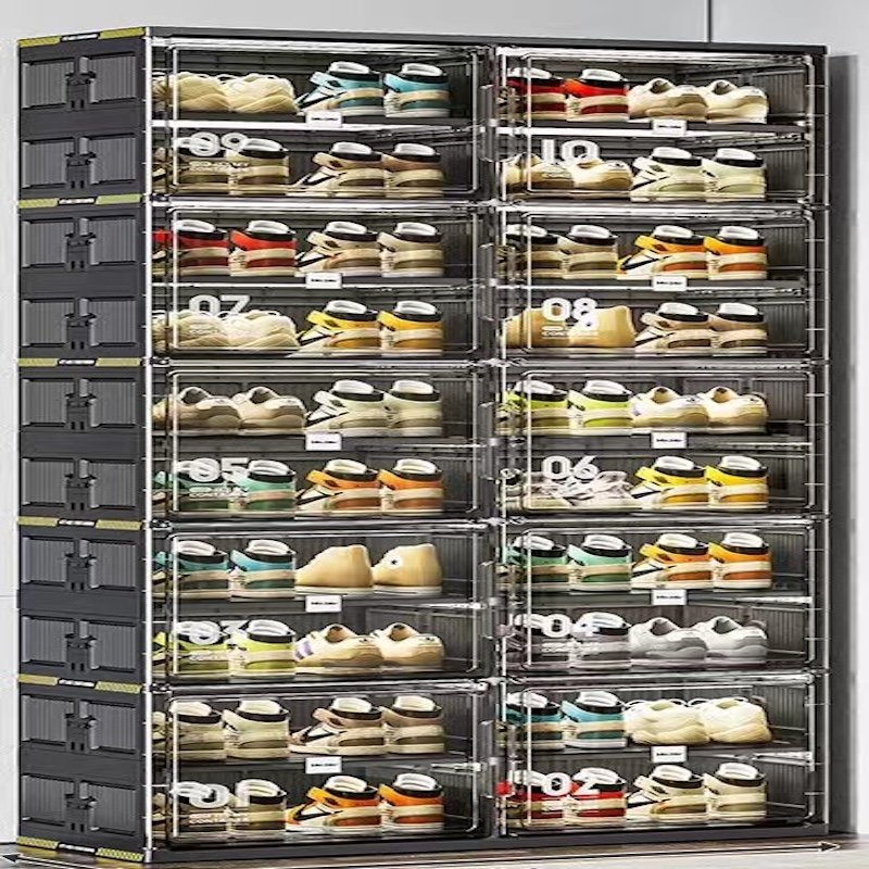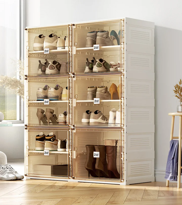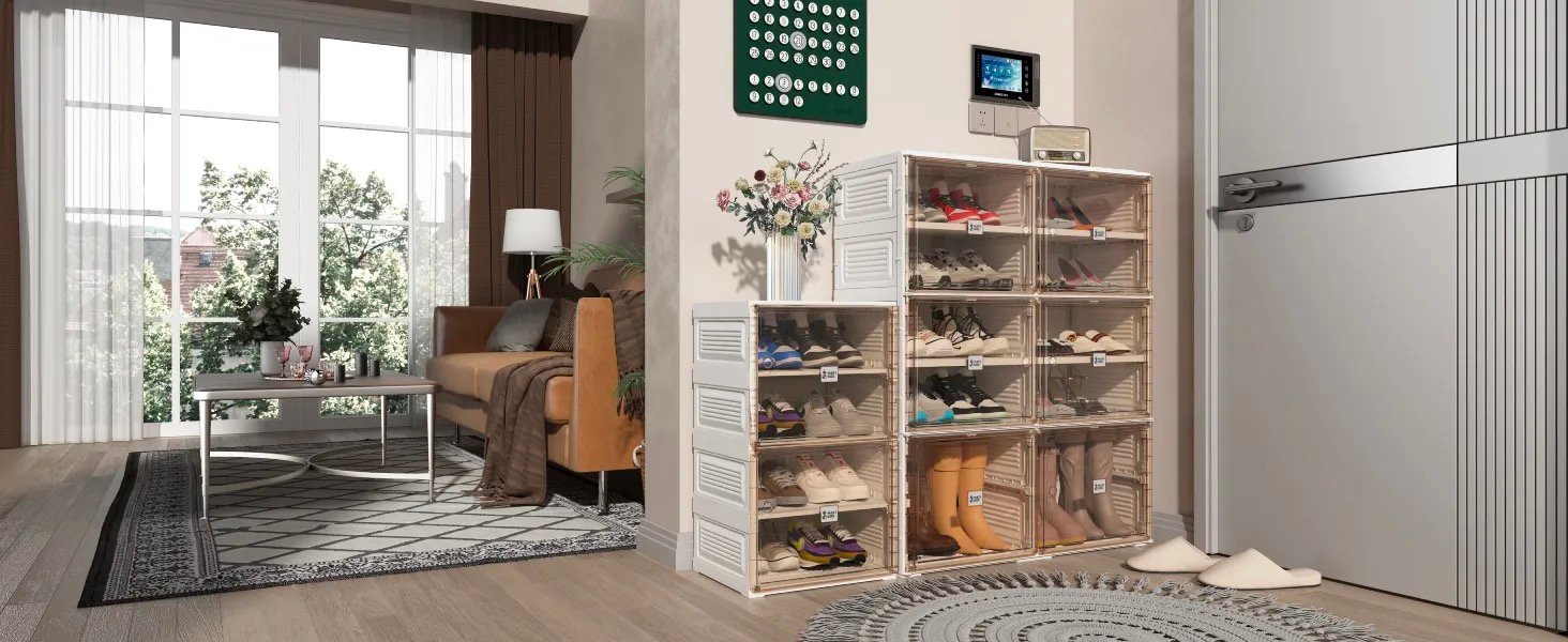 Kupiłem stojak na buty, aby uporządkować przestrzeń i działa lepiej niż się spodziewałem. Udało mi się go uruchomić bez niczyjej pomocy. Jest bardzo stabilny i świetnej jakości. Pokrywy są przezroczyste, więc ludzie mogą przez nie patrzeć, aby wyjąć buty. Na każdych drzwiach są uchwyty, dzięki czemu otwieranie jest bardzo łatwe. Magnetyczne elementy na drzwiach utrzymują drzwi szczelnie zamknięte. Świetny produkt!